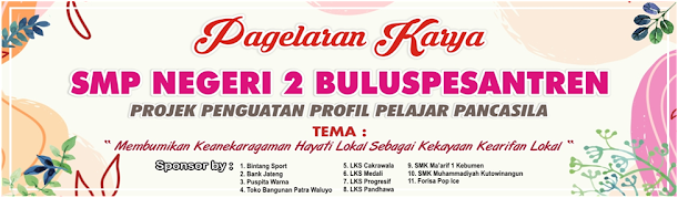 HUT SMP Negeri 2 Buluspesantren ini dilaksanakan dari tanggal 2-7Januari 2023. Dari jadwal yang ada tersebut ada acara bazar yang tentunya sangat meriah berupa pagelaran karya Projek Penguatan Profil Pelajar Pancasila yang di sponsori oleh banyak lembaga yang membuktikan begitu hebatnya SMP Negeri 2 Buluspesantren