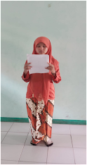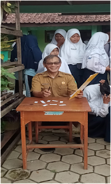 Ibu Titin Umaroh, S.S., dengan sangat konsentrasi menyiapkan penilaian geguritan