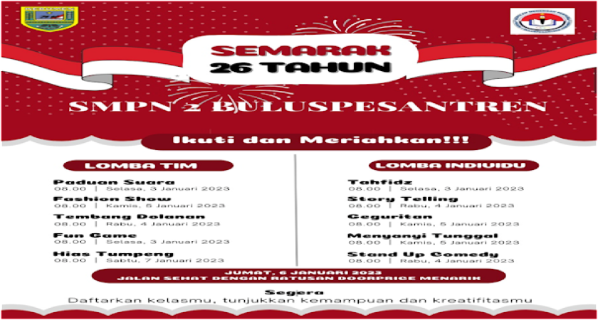 Ayo semuanya bisa menikmati kemeriahan dari acara HUT SMP Negeri 2 Buluspesantren.